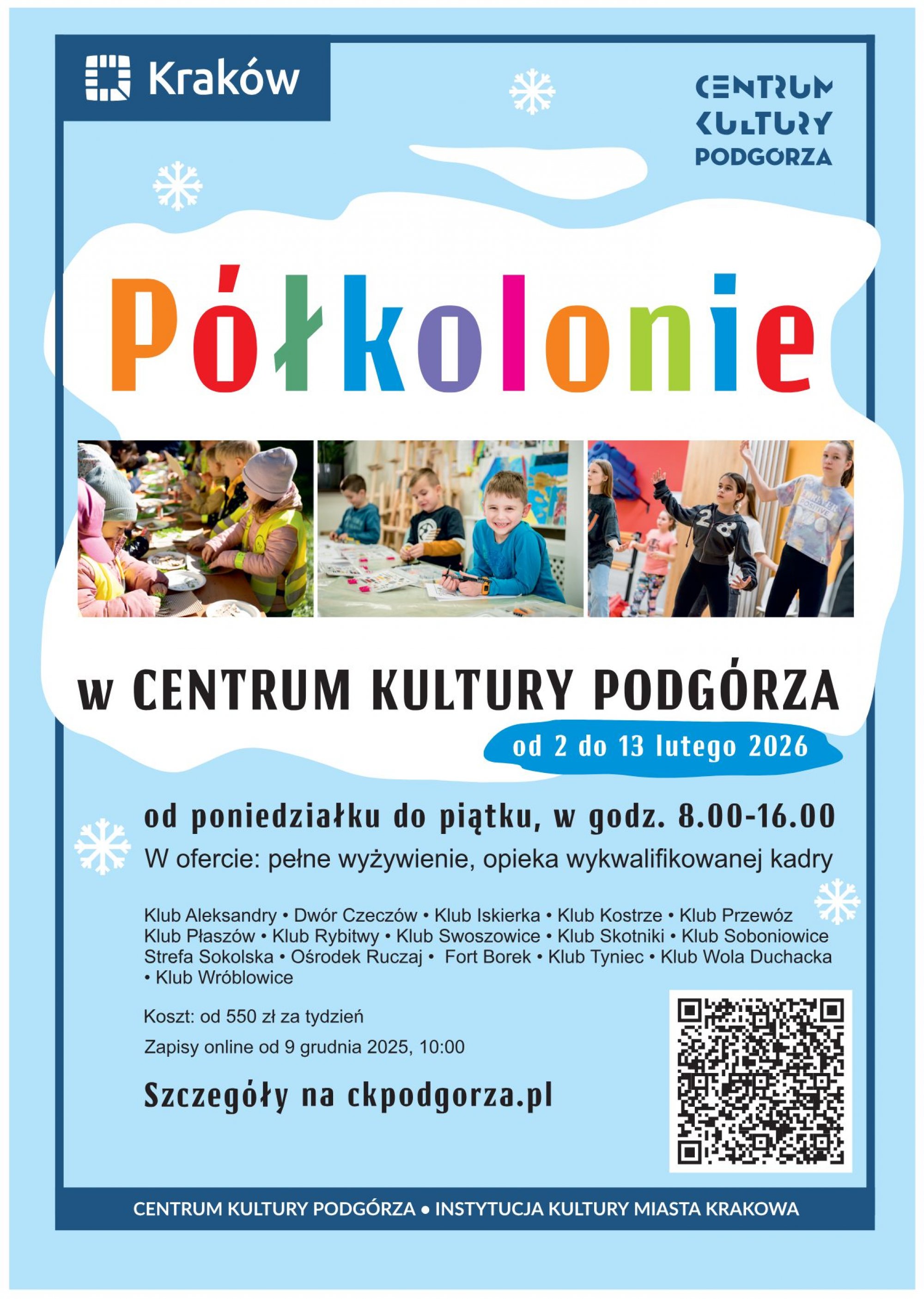 Strefa Sokolska zaprasza dzieci na wyjątkowe, zimowe półkolonie pełne atrakcji, wyjazdów i kreatywnych aktywności. Zimowy wypoczynek odbędzie się w dwóch pięciodniowych turnusach, a wszystkie zbiórki i powroty zaplanowano w Klubie Płaszów przy ul. Gumniska 32.